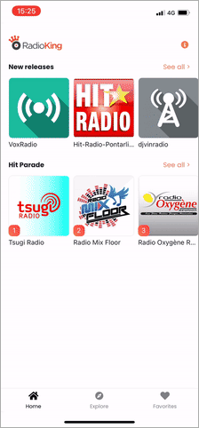 - Hit parade: a ranking of the radio stations on the RadioKing listening platform.