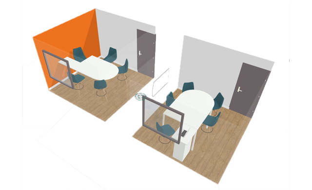 We then created various 3D models of room 2 to see what it would look like with the real proportions of the table. We wanted to make sure that all 5 people had enough space to move freely and feel comfortable.