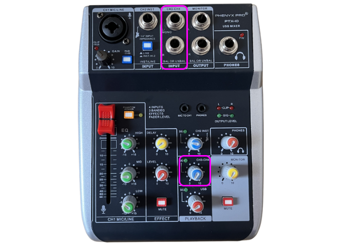 If you’ve recorded something and want to listen back to it, you can use this knob to easily control the level of that playback. This can come in handy for live radio broadcasting and podcasting!