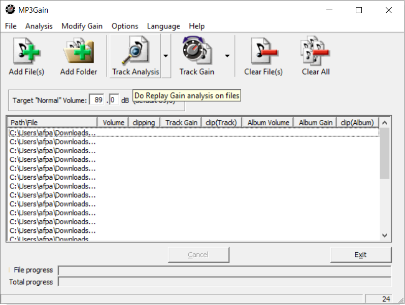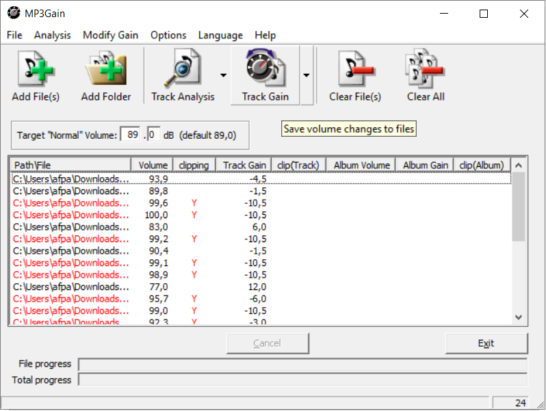 - Once the analysis is over and you’re happy with it, click on Track Gain to normalize your files.
