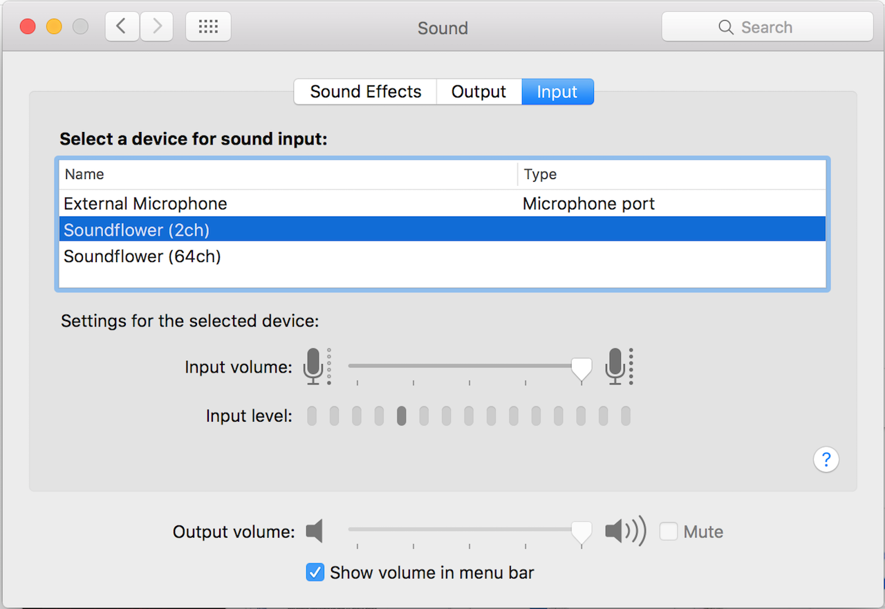 Attention: Under the Audio tab, you’ll need to ensure that your Audio Device is set to Soundflower (2ch):
