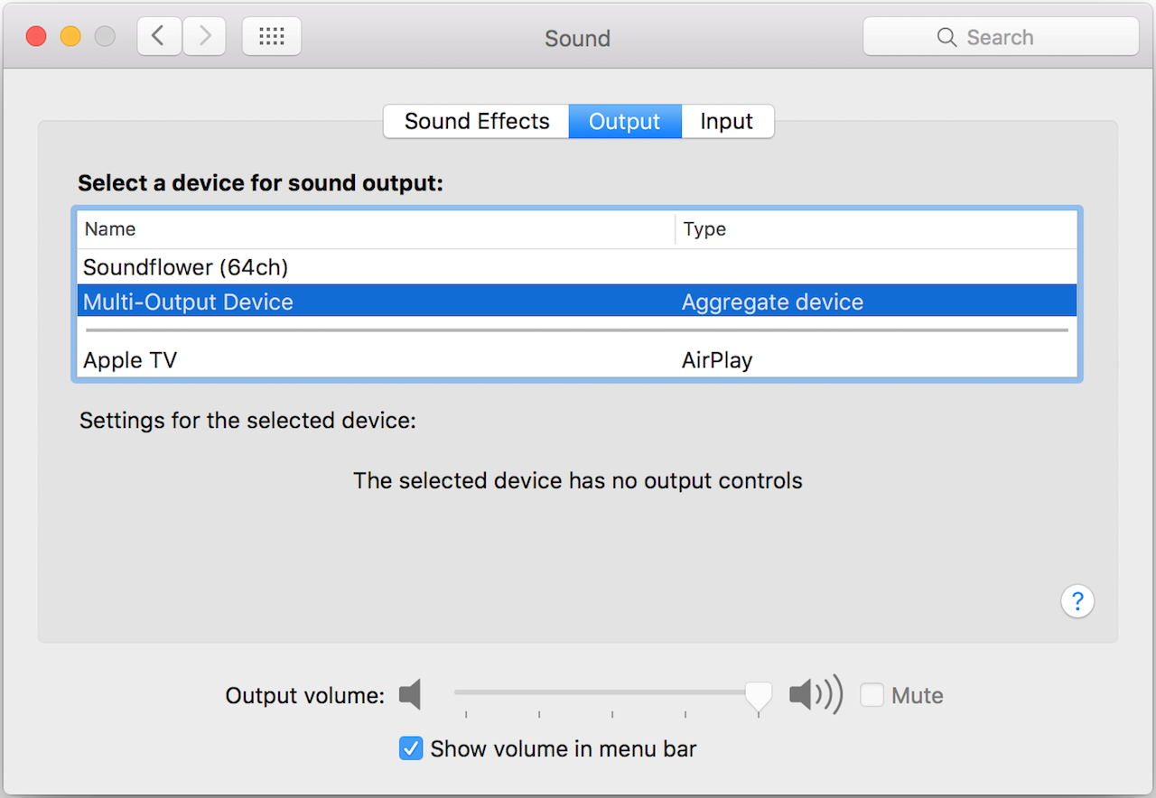 You’ll now need to head over to System Preferences > Sound to configure your sound settings. Under Output, select your Multi-Output Device:
