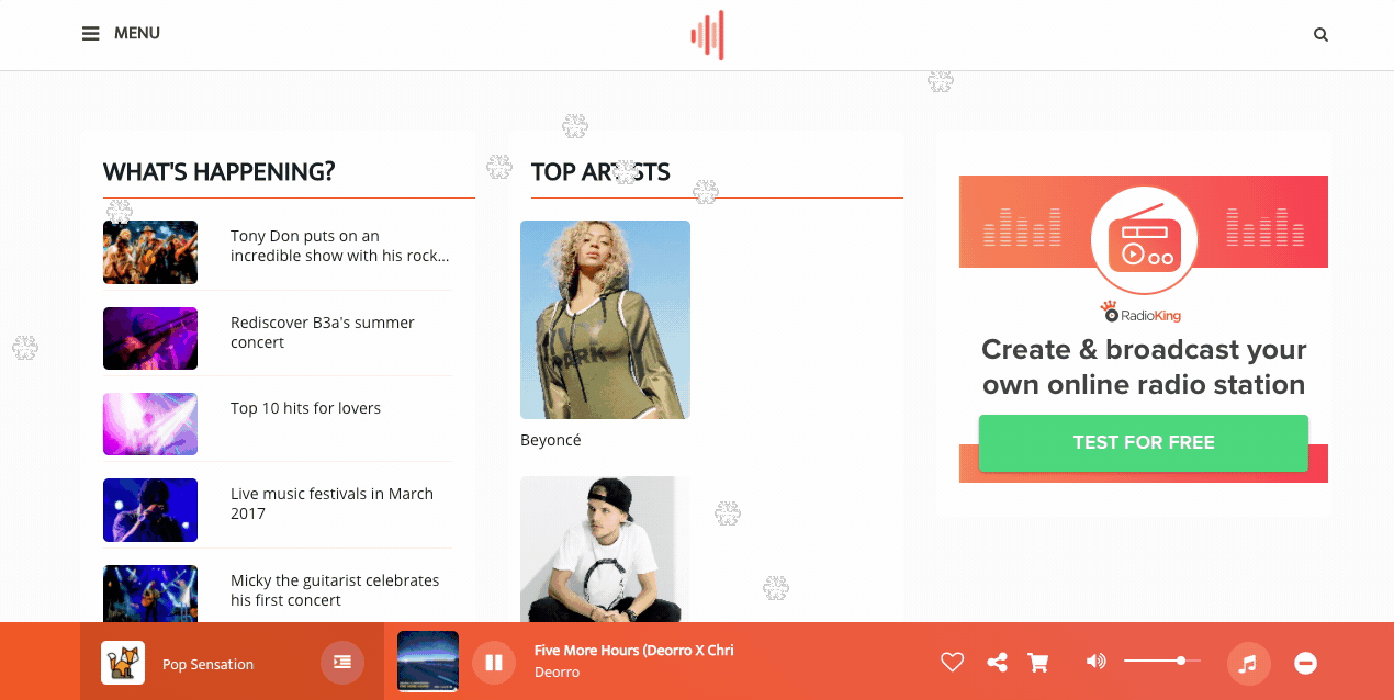Add Christmas decorations to your station’s website. This could include snowflakes falling on the screen, Christmas banners, or a countdown to Christmas. If you have a website with RadioKing, we’ve prepared a HTML code that you can easily integrate in order to let it snow!