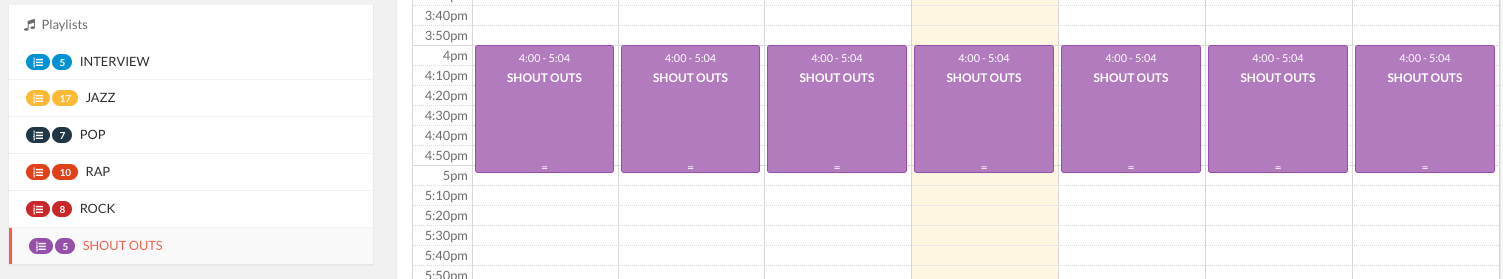 Head over to Scheduling > Daily Generation, here you’ll be able to search for the shout-out you want to broadcast in the “Add a track” section on the right.