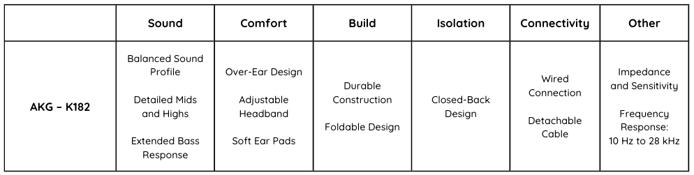 – Extended Bass Response: While maintaining a balanced sound, the K182 headphones also offer a solid bass response, which can be beneficial for music segments and overall audio richness.