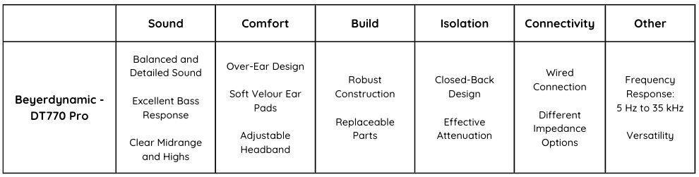 – Clear Midrange and Highs: The DT770 Pro headphones offer clear and detailed midrange and high frequencies, ensuring that vocals and other critical audio elements are well-represented.