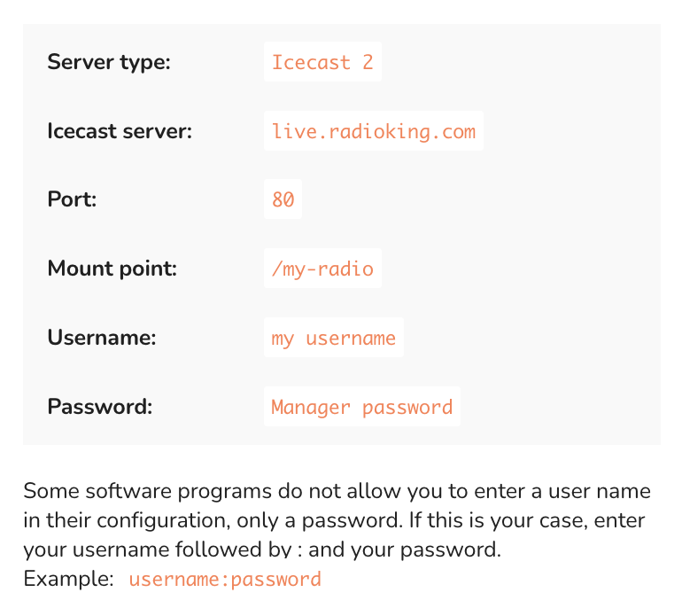 Note: RadioKing is compatible with any broadcasting software that runs on IceCast 2.